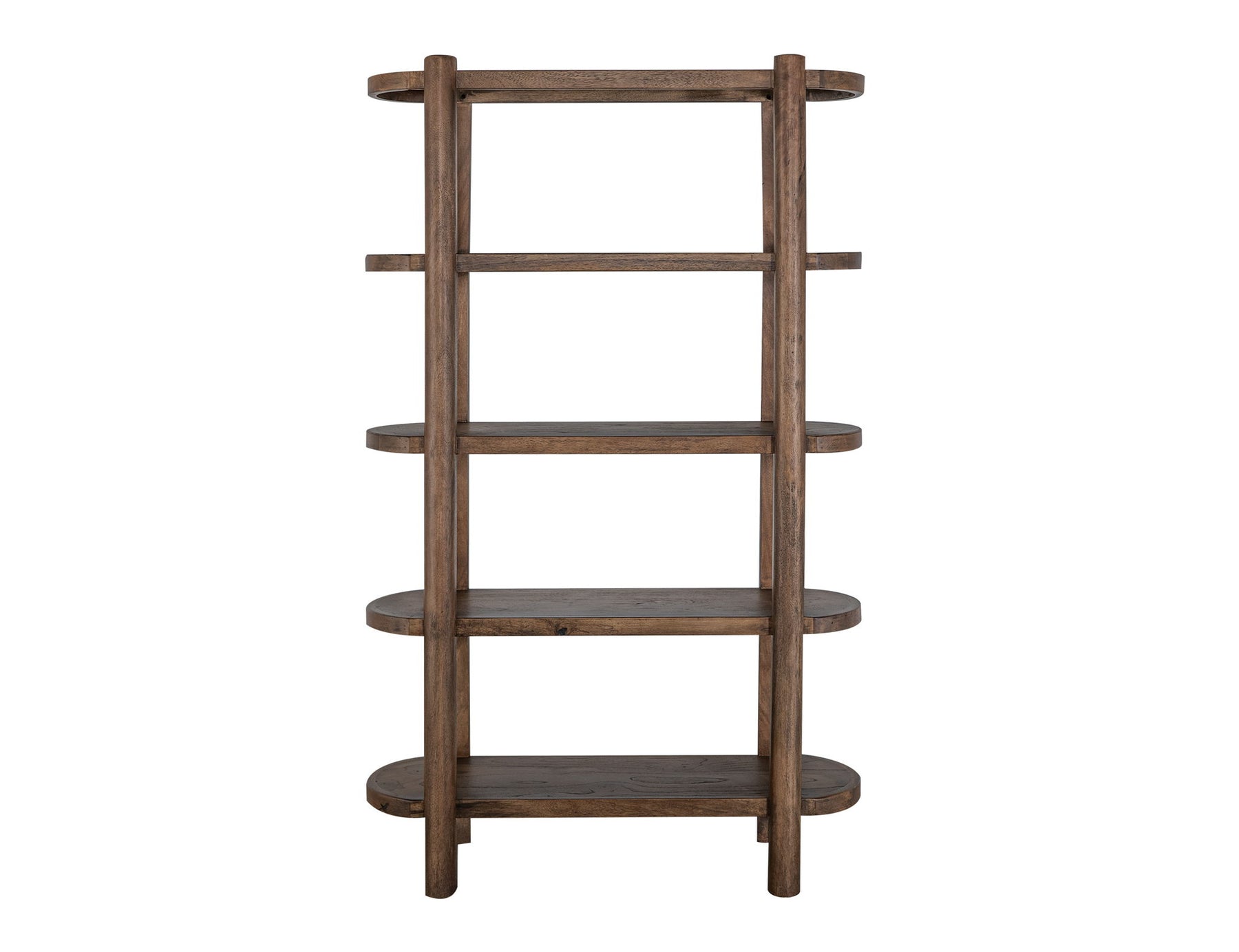 4 Shelves, Bookcase. Our exquisite Balam collection is meticulously handcrafted using high-quality mango and teak wood. This simple yet striking collection is designed to infuse your space with an organic, modern aesthetic. The bookcase boasts a unique organic shape, featuring elegantly curved oval shelves and rounded legs, adding a touch of sophistication to any room.