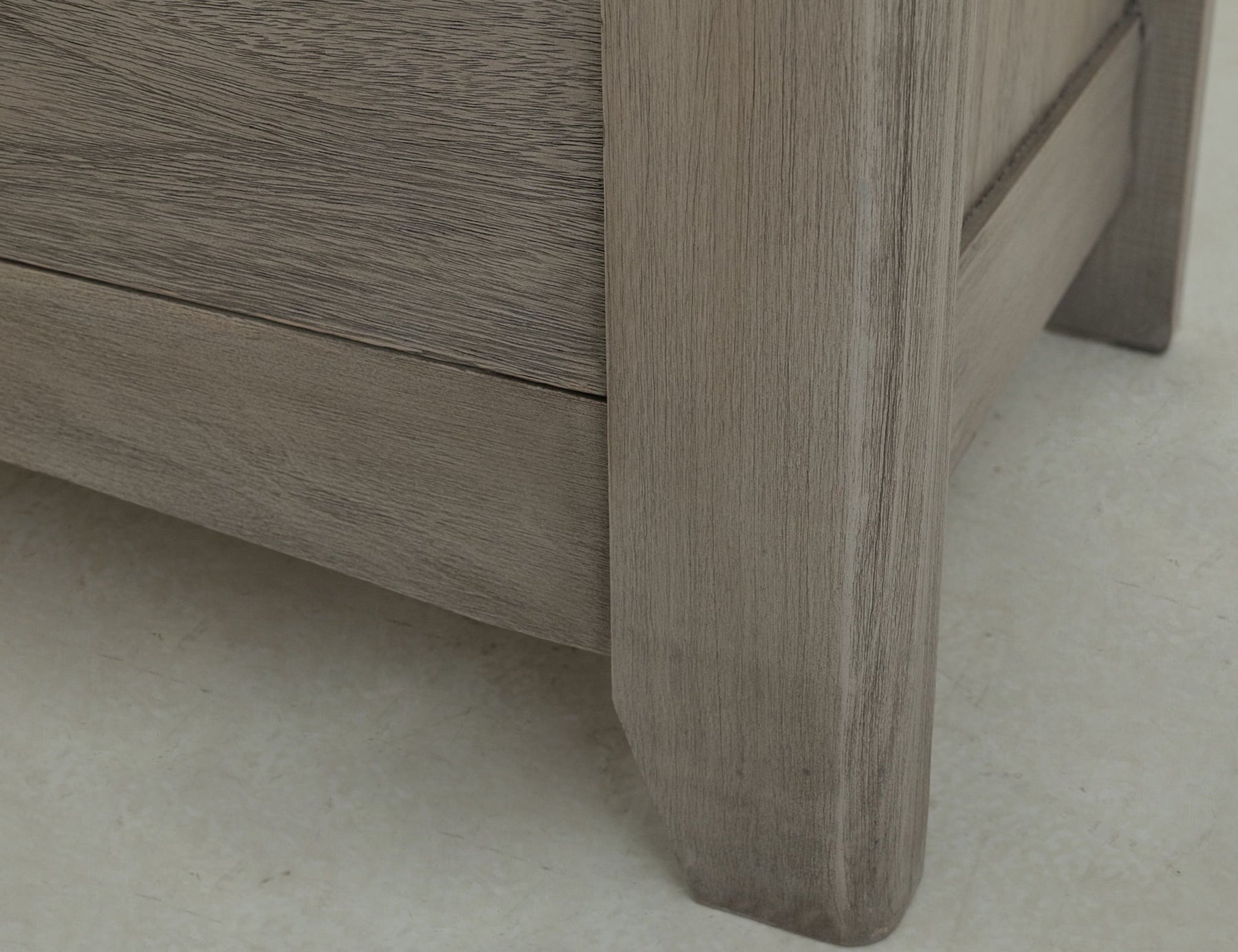 - Multi-step lacquer finish in a light gray and brown finish on tops.