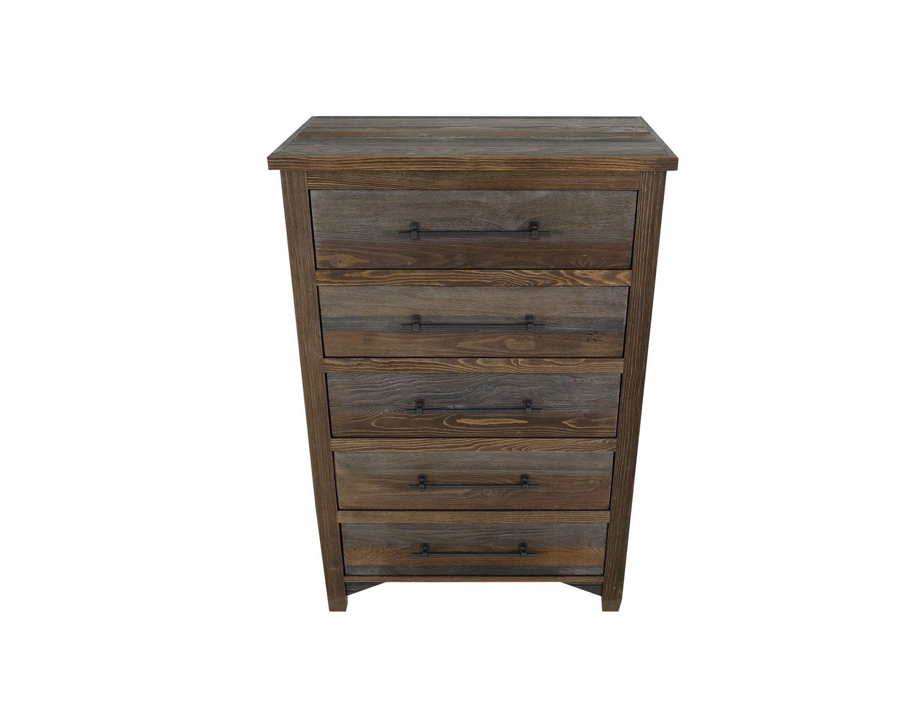 5 Drawer, Chest. Elevate your bedroom environment with the Town collection. Introducing our exquisite Town chest, a perfect blend of rustic charm and modern sophistication. With its iron center handle pulls, this chest adds an industrial touch that beautifully contrasts with its warm and inviting design. It is not only a practical storage solution but also serves as a striking statement piece that enhances any room with its unique character and style. Experience the perfect fusion of elegance and utility with the Town chest, where timeless beauty meets everyday functionality.