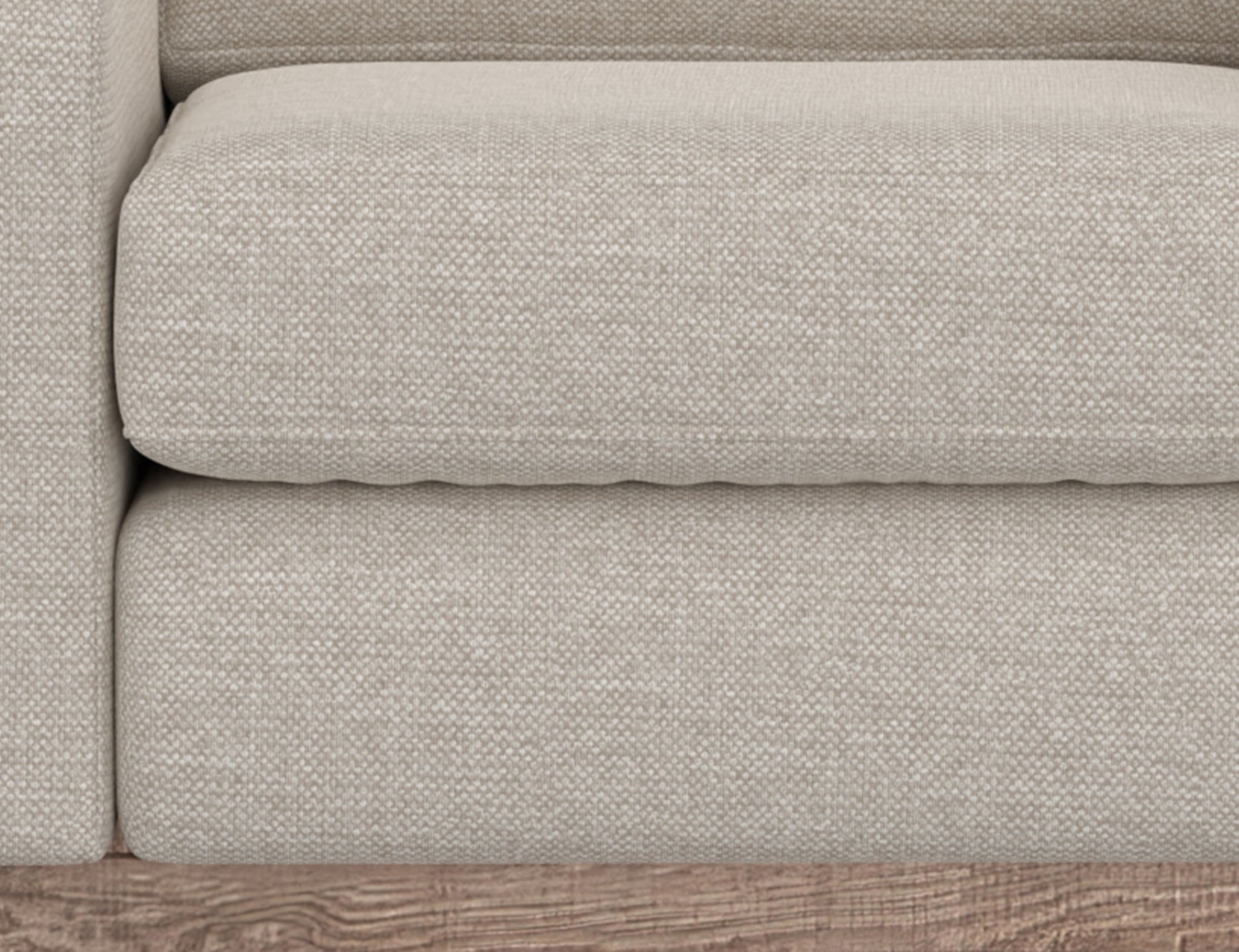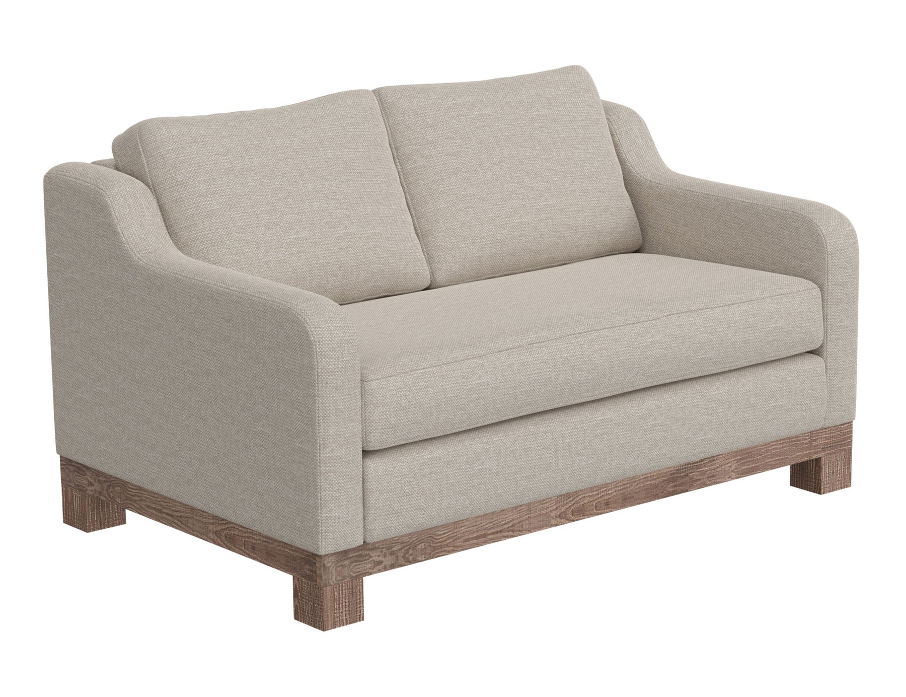 Wooden Frame & Base, Two-Cushion Loveseat. With its chunky, wide silhouette, the Samba collection infuses your living room with a touch of traditional charm. Supported by a sturdy frame crafted from solid pine wood, it rests gracefully on low-profile block feet with a rich hue.