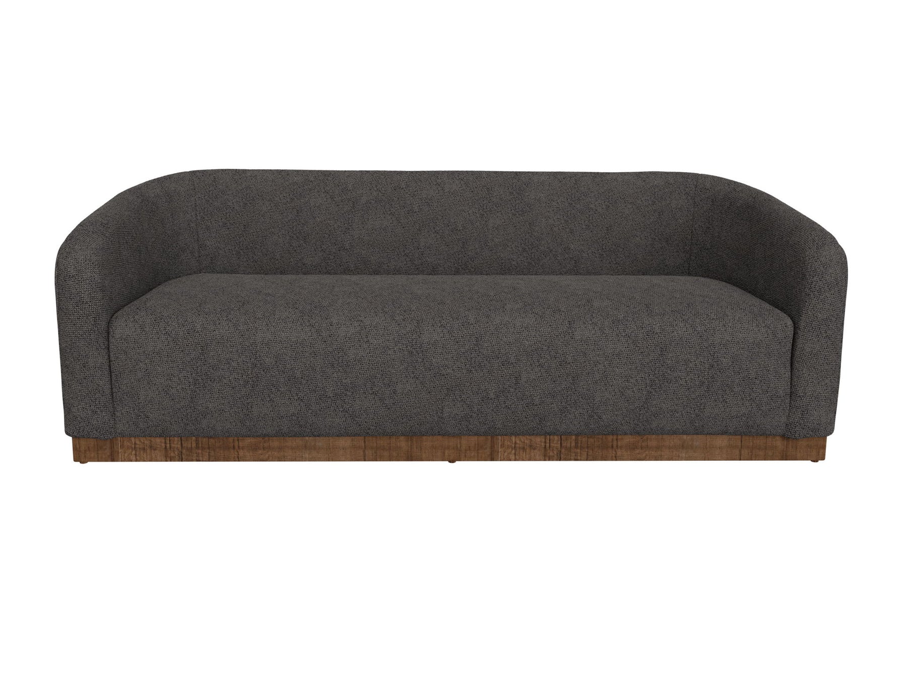 Wooden Frame & Base, Sofa. The Suomi Collection, distinguished by its flowing form, embodies the Zen-inspired Japandi style. This sofa minimalist design is harmoniously complemented by its wooden base crafted from pine wood, with its wraparound back seamlessly merging into rounded arms, creating a cradle for an exceptionally thick and comfortable cushioned seat