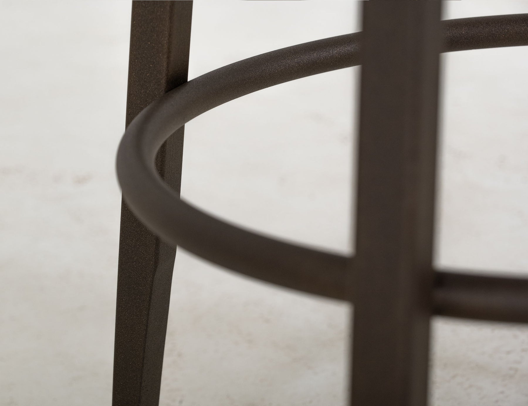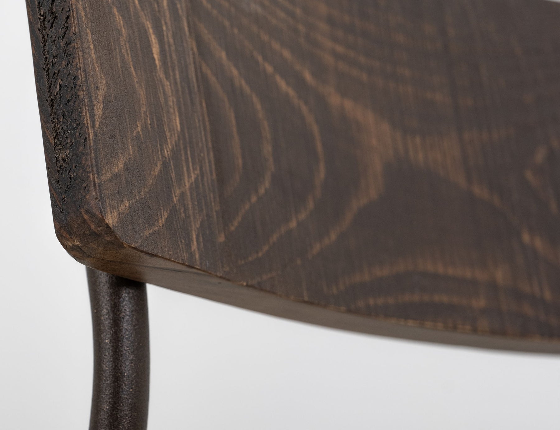 Barstool. Elevate your special space with our modern industrial bar stool, designed for both style and comfort. The seat is upholstered in faux leather, offering a sleek brown finish that enhances any decor while providing a comfortable sitting experience. The backrest features an elegantly curved wooden panel, adding a warm, natural touch to the stool's contemporary aesthetic. Crafted with a sturdy metal frame, this bar stool ensures durability and stability for everyday use. With four sleek and robust metal legs arranged in a slightly flared design, it provides added stability, making it the perfect addition to your kitchen, dining area, or bar. Transform your seating arrangement with this stylish and functional piece.