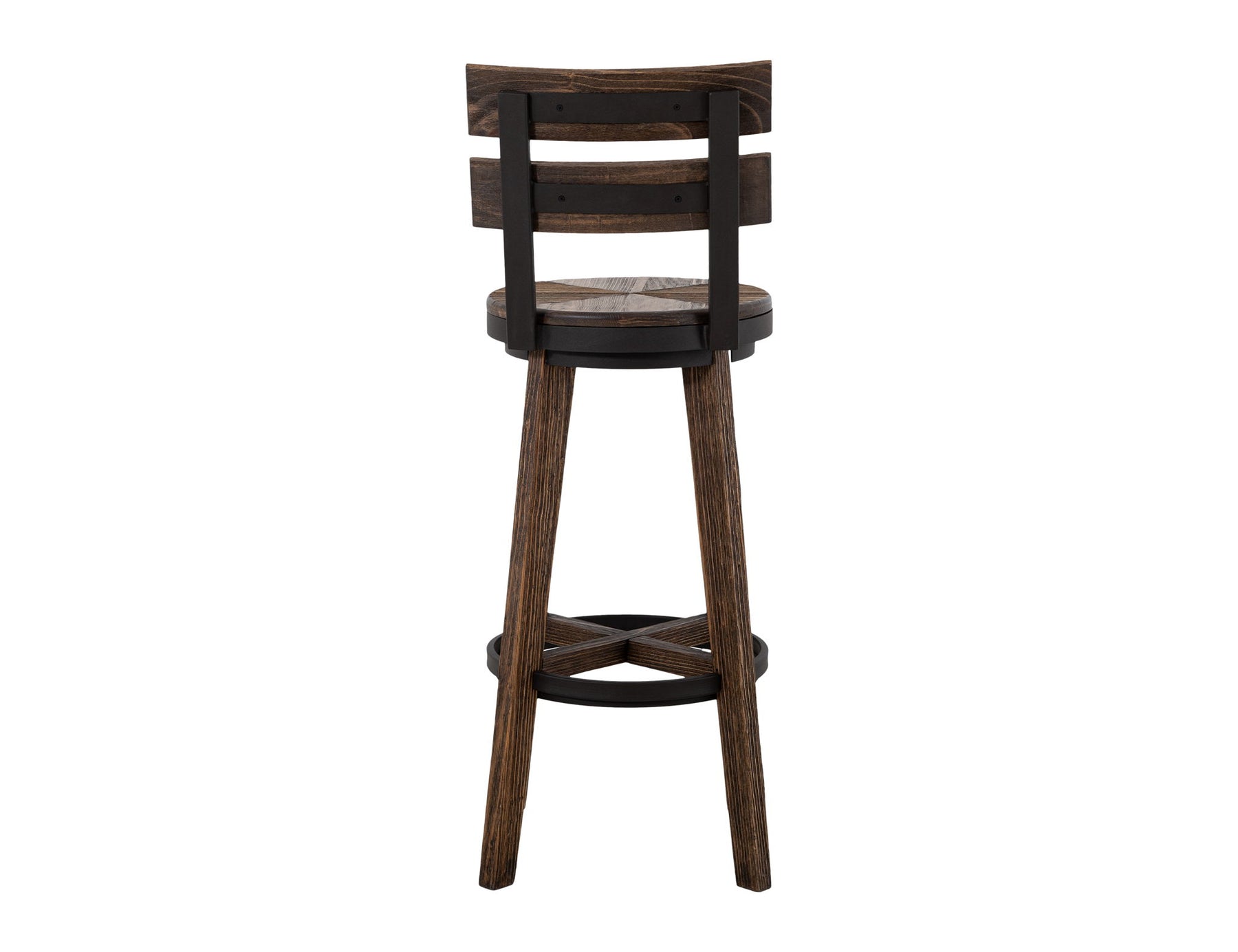 The metal footrest encircles the four sturdy wooden legs, providing stability and comfort. This stool is a practical and charming addition to any rustic, contemporary, or industrial space.