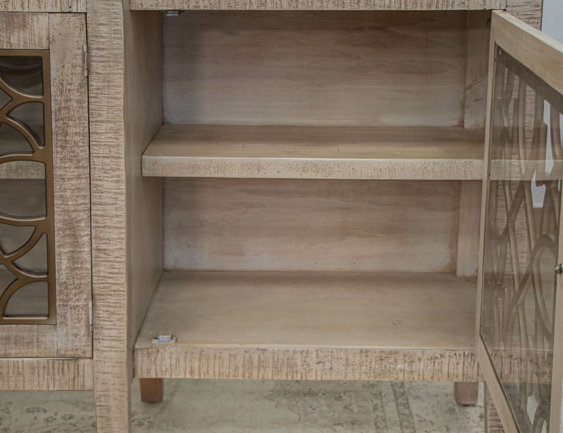 With intricate designs adorning its glass door, the Mandala Console emerges as a captivating focal point in any room. Meticulously crafted from pine wood and skillfully weathered by our artisans, this console exudes elegance and offers exceptional quality, making it a prized addition to your home.