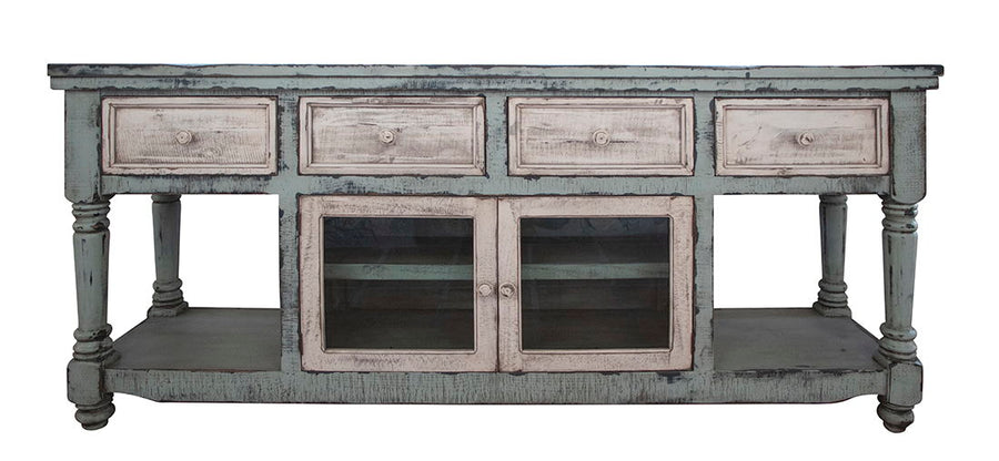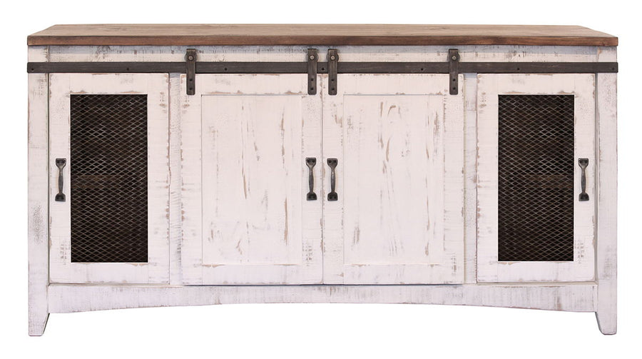 Pueblo - TV Stand / Console / Wall Unit - Antiqued White / Brown