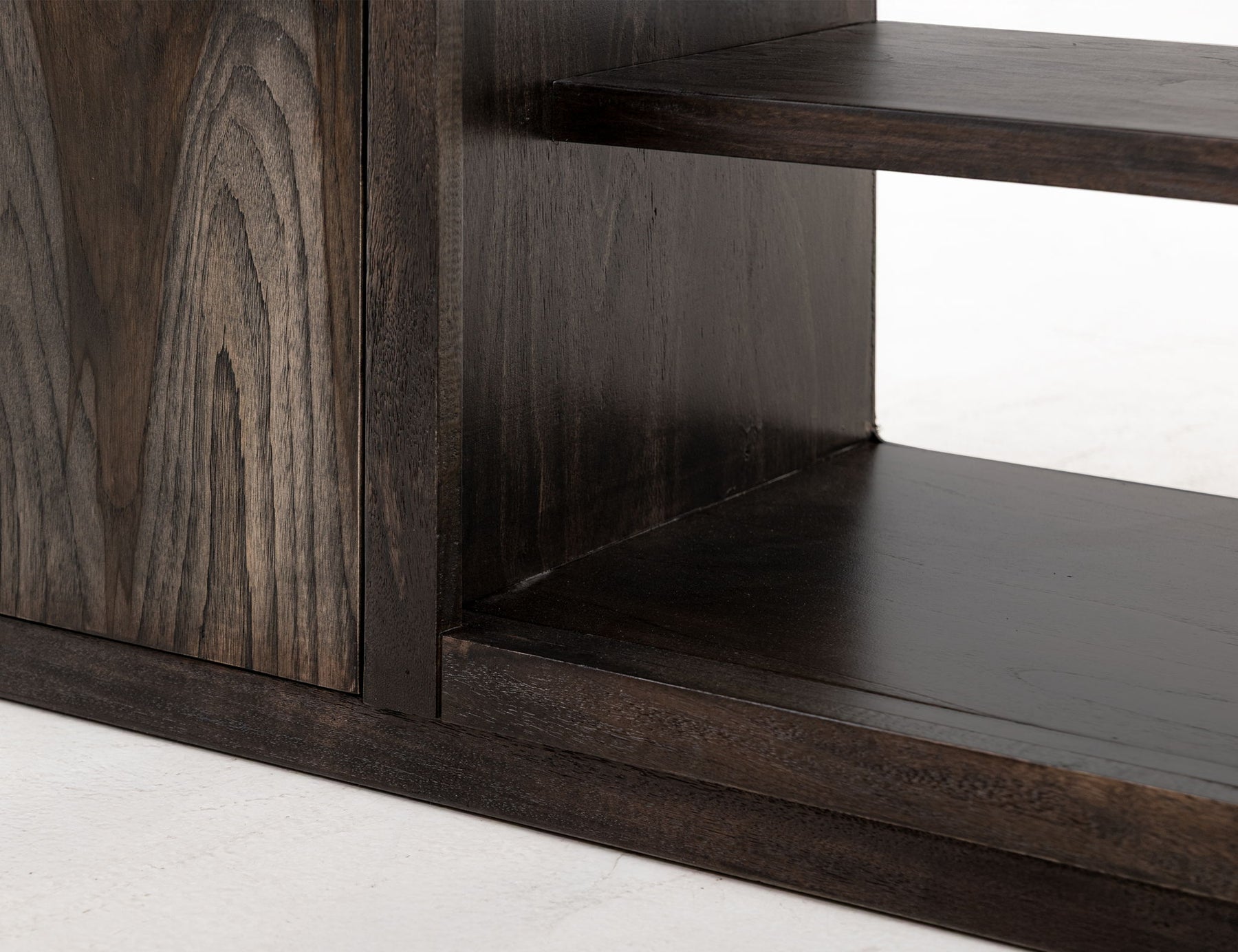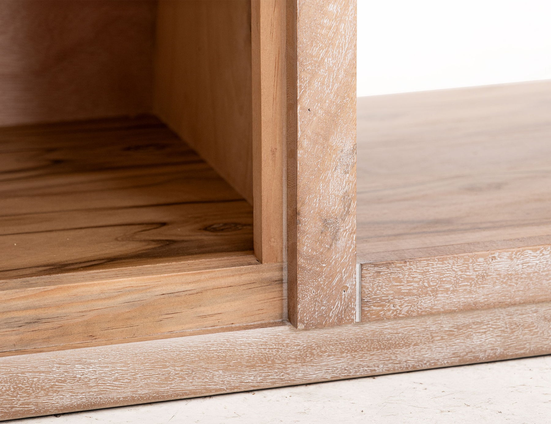 2 Drawer & 2 Door TV Stand, 80" for Fireplace. Our Balam collection is handcrafted from mango and teak wood. This simple yet stunning collection will bring an organic, modern touch to your space. This 80-inch TV stand becomes the heart of your living space, featuring two drawers and two doors for ample storage and a design that highlights the wood’s unique grain. Now enhanced with a fireplace insert, it offers not only style but also a cozy ambiance. Pair it with two matching piers to form a stunning wall unit that frames your space with harmony and sophistication. Every detail speaks of artistry, transforming your home into a sanctuary where modern design meets timeless warmth.