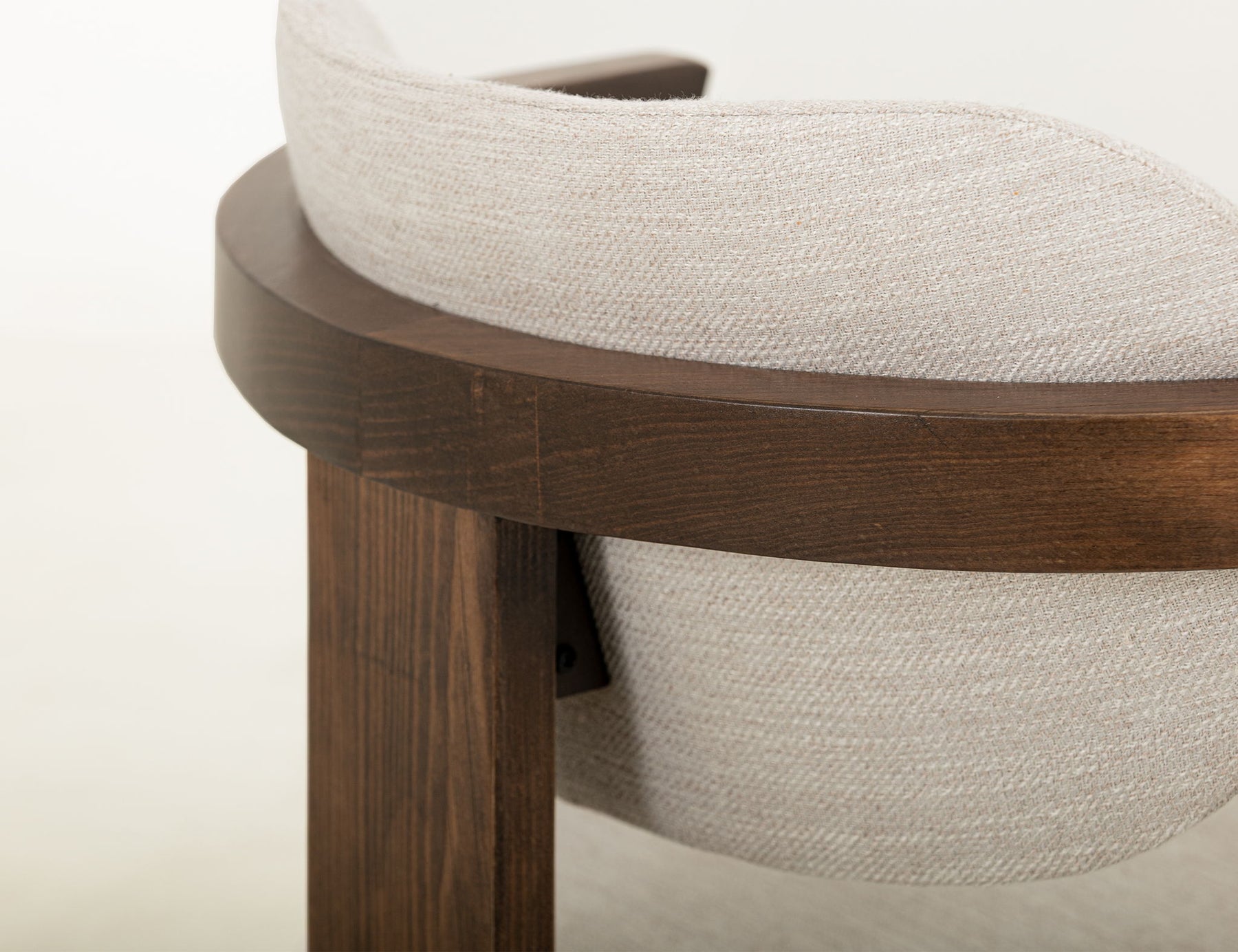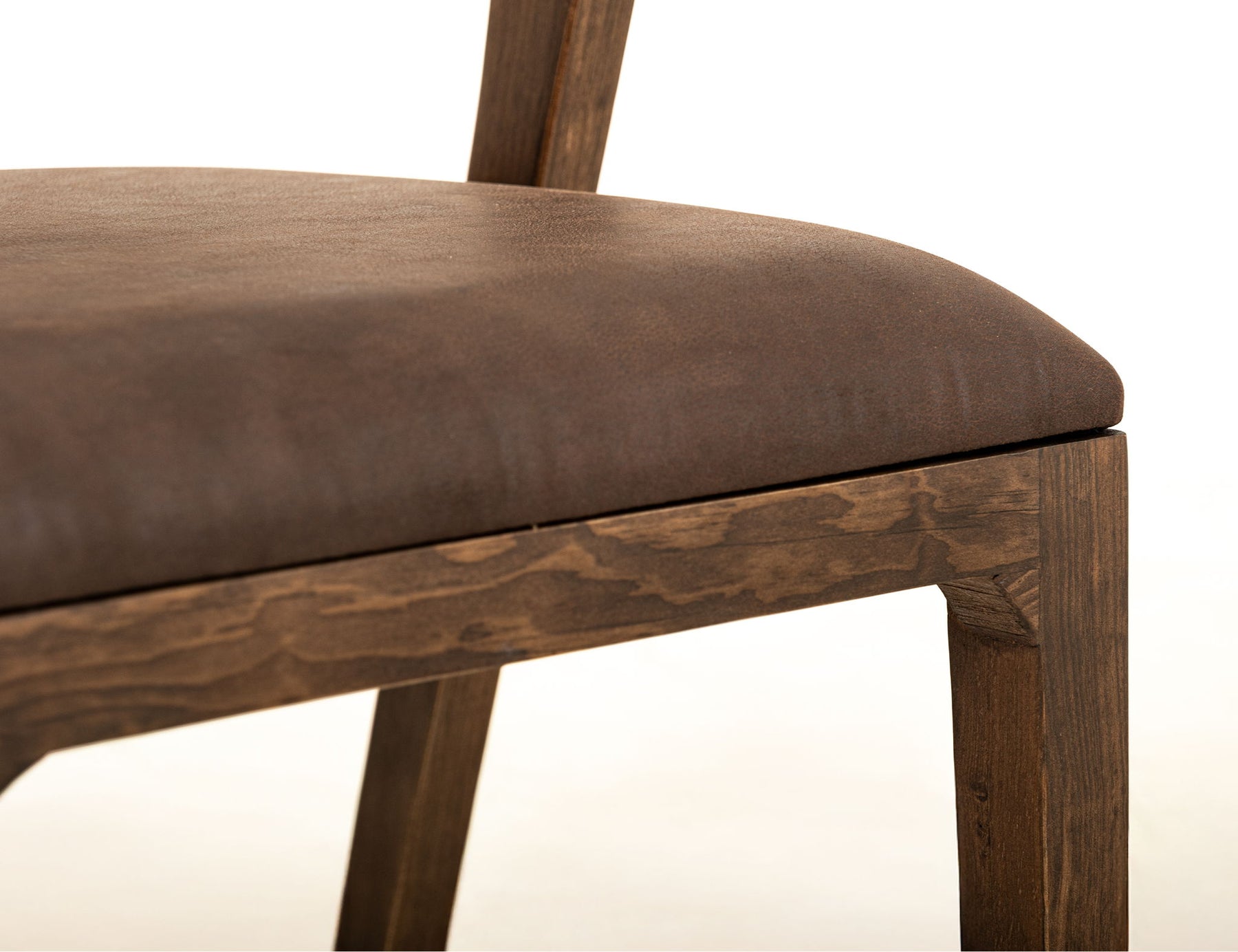 Silla Tapizada. La Silla Tapizada Zaphiro combina un diseño atemporal, comodidad superior y calidad artesanal para realzar cualquier espacio, ya sea comedor o sala de estar. Fabricada con maestría en madera maciza de pino, esta silla de comedor tapizada presenta una estructura resistente con un acabado en un marrón intenso y cálido que realza la belleza natural de las vetas de la madera. Diseñada para la comodidad diaria, cuenta con un asiento acolchado y un respaldo tapizado con soporte, ambos tapizados en tela de alta calidad para una sensación suave y duradera. Sus líneas limpias y su silueta ligeramente curvada crean un aspecto versátil que combina a la perfección con interiores modernos, de transición y clásicos.