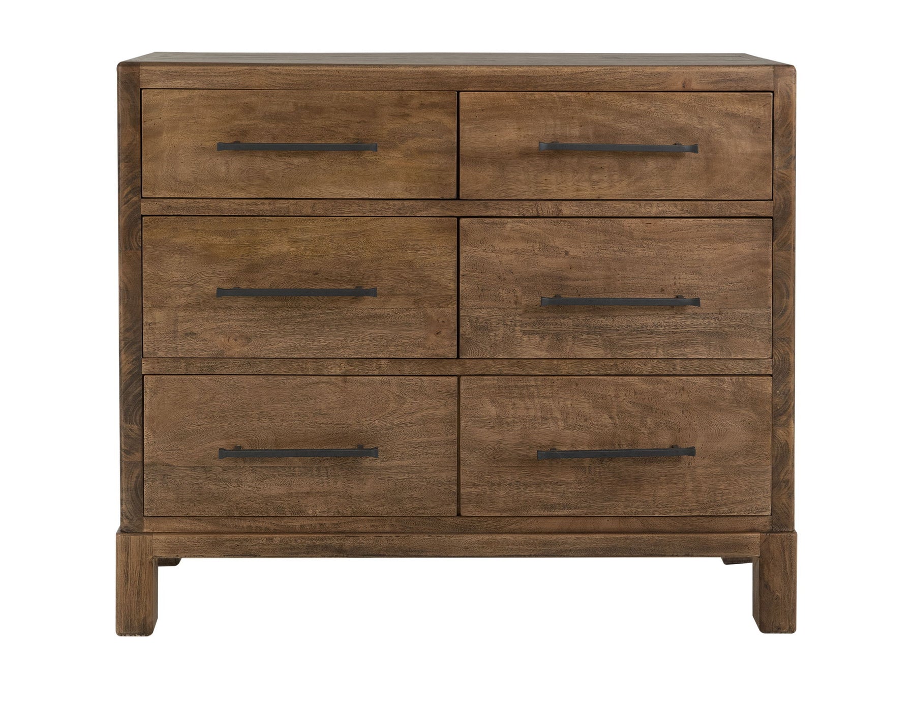 Cómoda de 6 cajones. La colección Mérida presenta un exquisito juego de dormitorio que fusiona a la perfección sostenibilidad y diseño, plasmando un estilo moderno y ecléctico. Fabricada en madera ecológica de mango y melina, combina belleza y funcionalidad para realzar tu espacio. El acabado marrón realza la elegancia natural de la madera, creando una atmósfera serena y acogedora. La cómoda presenta un diseño minimalista de líneas limpias y forma rectangular; no solo ofrece prácticas soluciones de almacenamiento, sino que también realza la estética de tu dormitorio con su encanto atemporal. La cómoda se apoya sobre cuatro patas robustas que garantizan estabilidad y durabilidad. La cómoda Mérida es un complemento versátil que complementa la decoración de cualquier dormitorio.