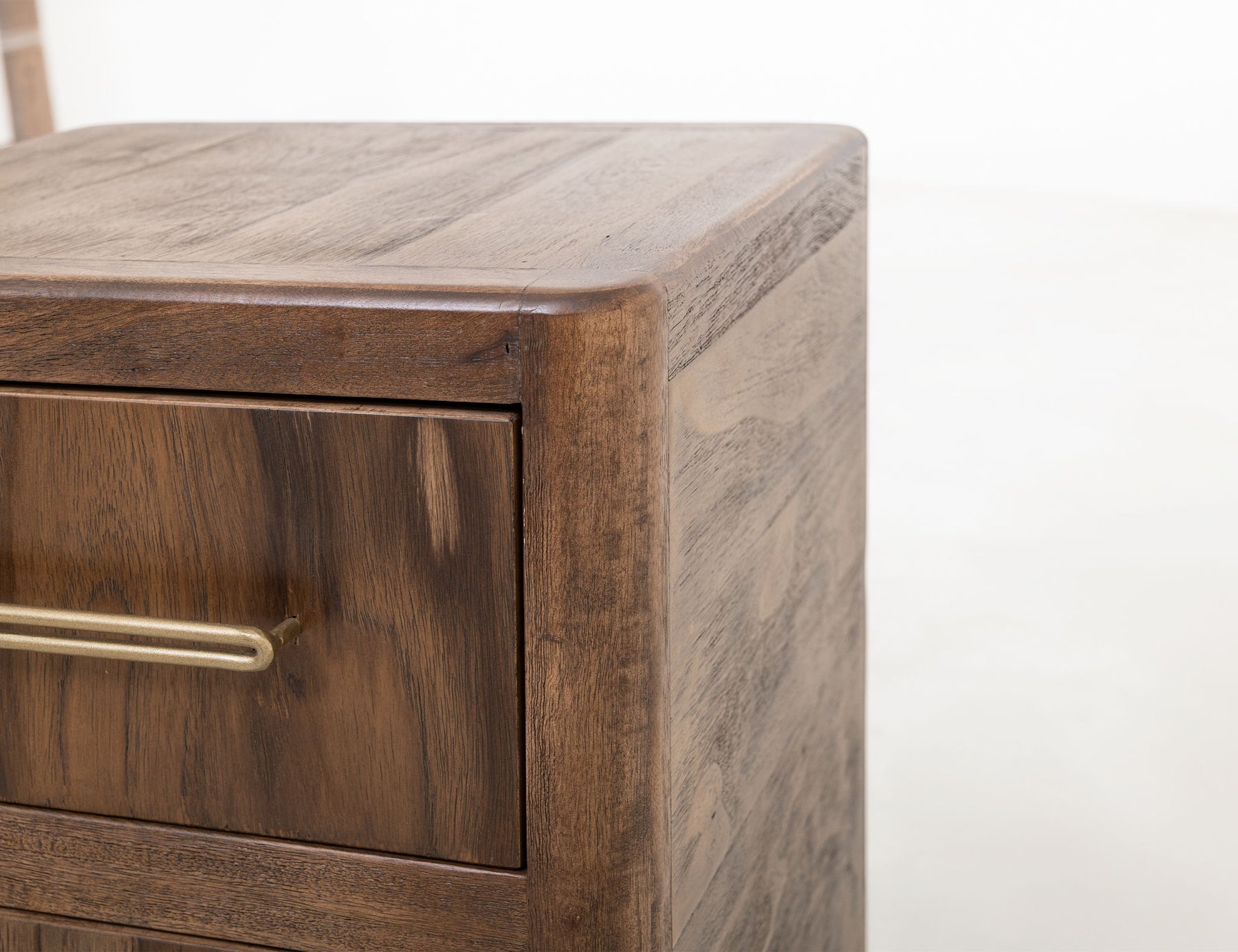 Mesita de noche de 2 cajones. Transforma tu espacio con este moderno juego de dormitorio. Fabricada con teca industrial y madera de mango sostenible, esta colección combina durabilidad y belleza natural. El acabado lacado multicapa en marrón intenso aporta calidez y profundidad al mueble. La mesita de noche Praga cuenta con dos amplios cajones para un amplio espacio de almacenamiento. Los tiradores dorados envejecidos aportan un toque de sofisticación, mientras que sus patas cortas y robustas proporcionan equilibrio y estabilidad, convirtiéndola en una pieza versátil para cualquier espacio.