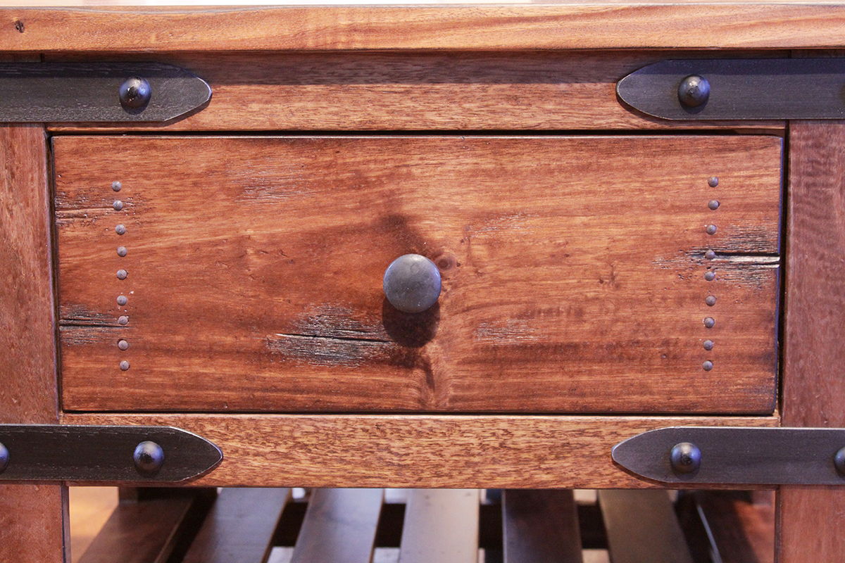 Mesa auxiliar de 1 cajón. La excepcional colección Parota presenta un tablero elaborado con madera de parota, una especie originaria de México y Sudamérica. Esta excepcional colección presenta un ligero envejecimiento a mano e incorpora detalles metálicos que le aportan mayor elegancia.