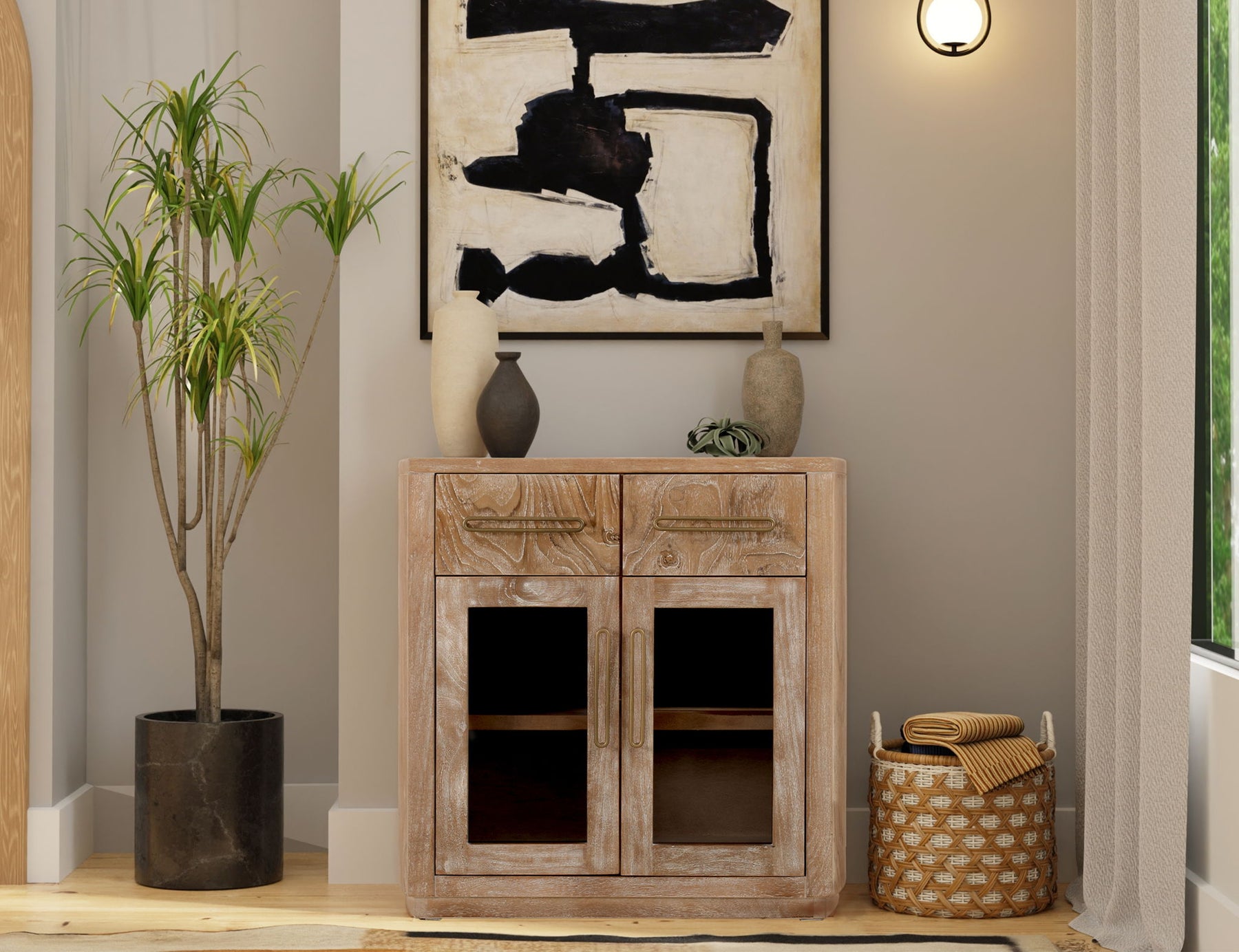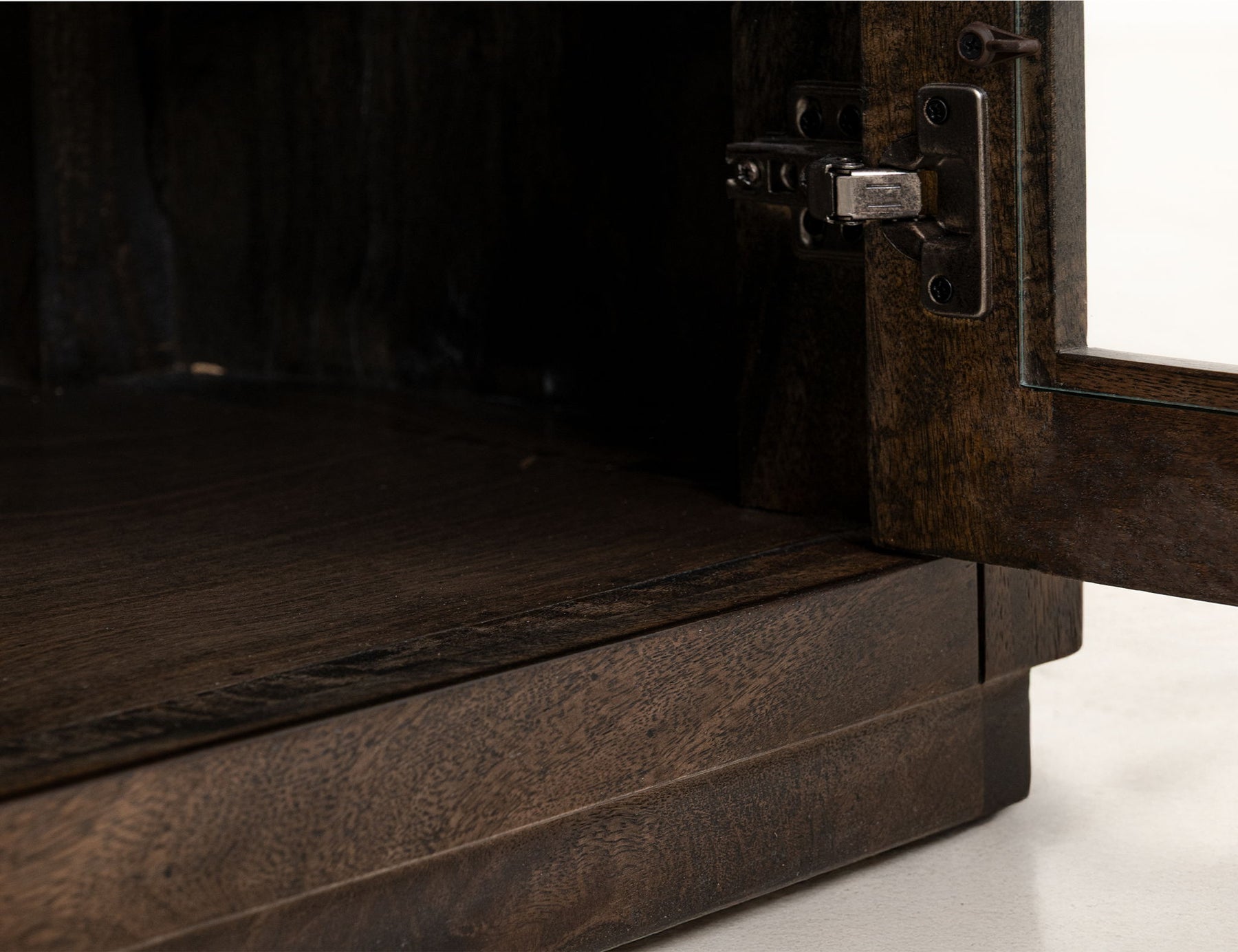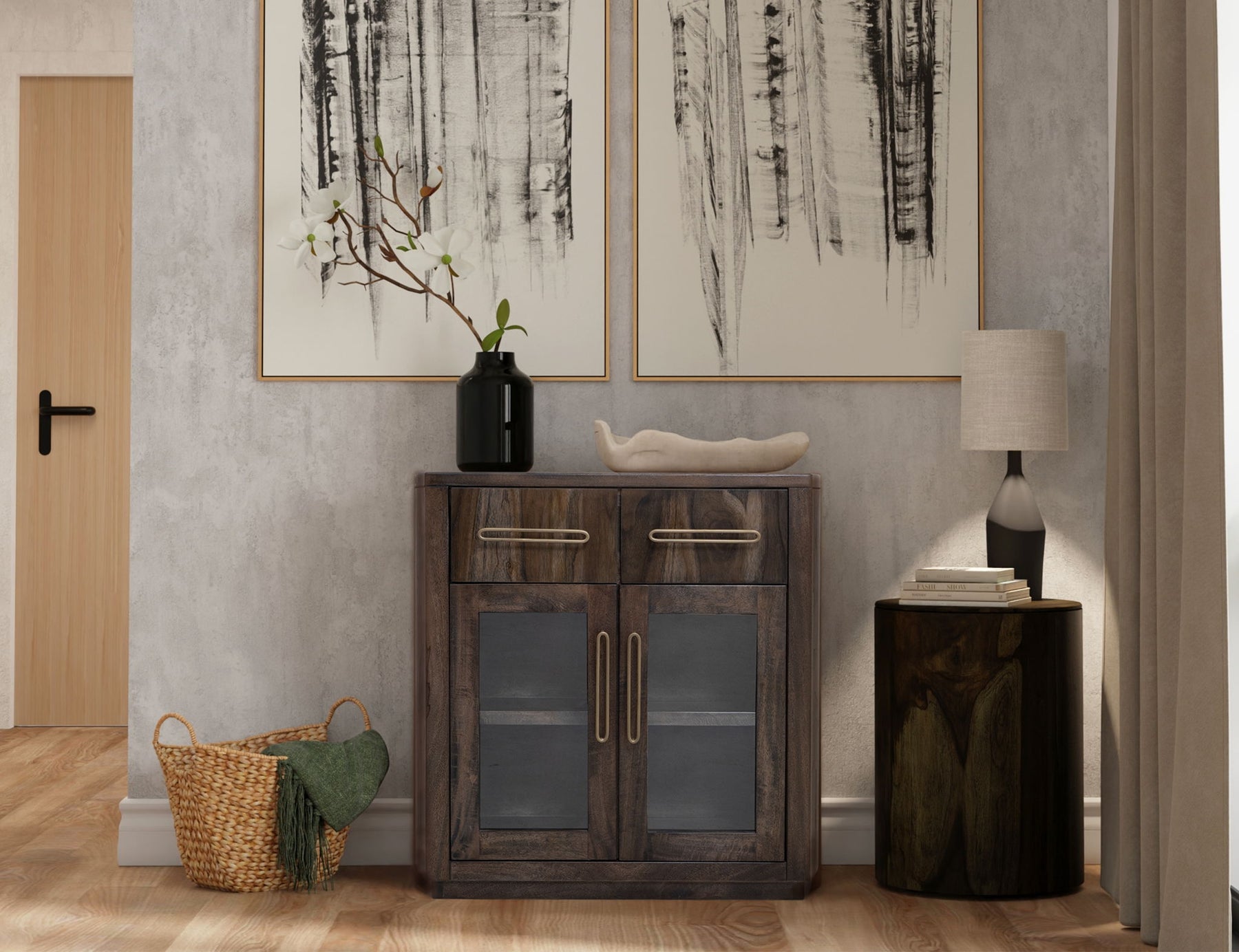 Servidor de 2 cajones y 2 puertas de vidrio. Esta hermosa colección Balam es elegante y funcional. Cuenta con dos puertas con paneles de vidrio, perfectas para exhibir sus objetos más preciados. Su diseño combina elegancia moderna con practicidad, convirtiéndola en una adición versátil a cualquier habitación.