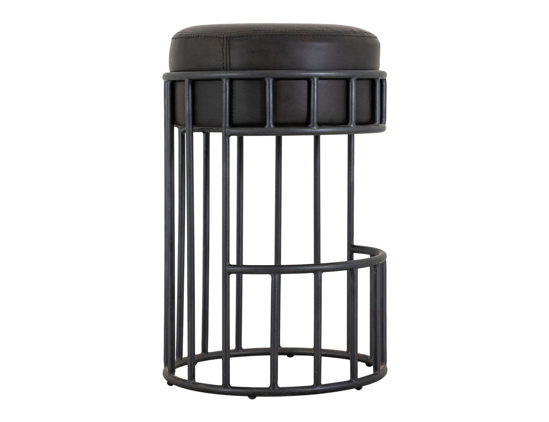 Taburete de bar tapizado de 76 cm con estructura de madera y base de metal. Realza tu espacio con el impresionante taburete de bar Merlin, una combinación perfecta de diseño moderno y comodidad. Esta elegante pieza cuenta con un asiento redondo y acolchado tapizado en piel sintética negra, que proporciona una experiencia lujosa y acogedora. Su exclusiva base cilíndrica de metal está adornada con barras verticales y un anillo de soporte circular, creando una llamativa estructura en forma de jaula que realza su estética contemporánea e industrial. Con una estructura de metal con recubrimiento en polvo en acabado negro mate, el taburete Merlin es resistente al astillado y garantiza una larga durabilidad. Es el complemento ideal para cualquier habitación, ya sea que busques complementar tu isla de cocina, tu bar o tu elegante espacio de trabajo. Experimenta la combinación perfecta de forma y funcionalidad con este exquisito taburete.