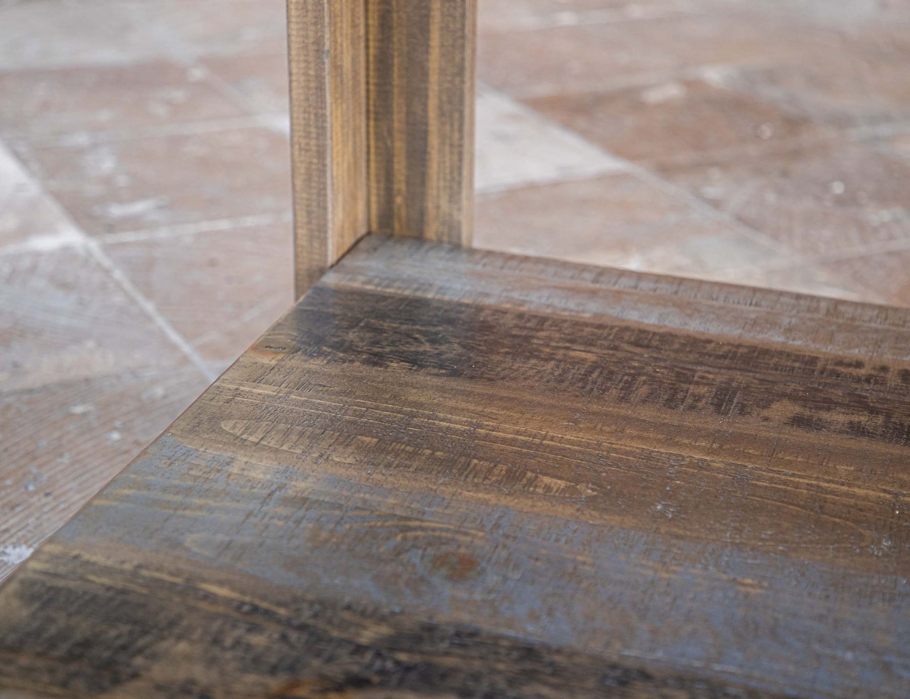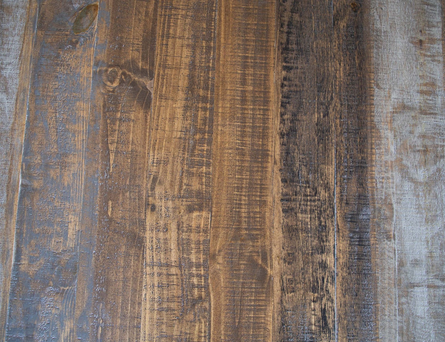 - Acabado de laca acrílica a base de agua pintada a mano en varios pasos en tonos grises y marrones para una apariencia actualizada de "madera recuperada".