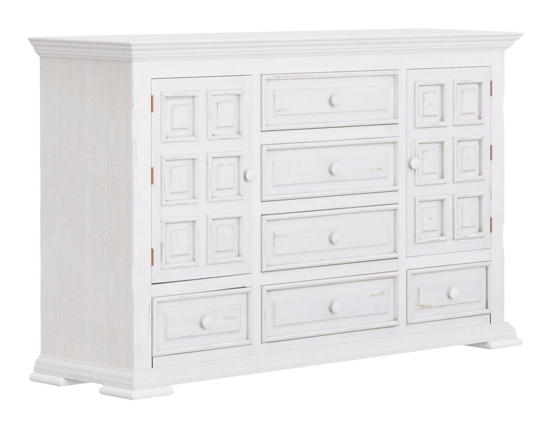 Commode à 6 tiroirs et 2 portes. Inspirée du style transitionnel, la collection Terra incarne l'élégance naturelle de ses lignes épurées et robustes, ainsi que le charme rustique du pin massif. Avec sa finition profonde et raffinée, cette collection représente une fusion harmonieuse d'éléments modernes et traditionnels, ce qui en fait une pièce intemporelle pour votre intérieur.